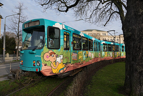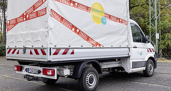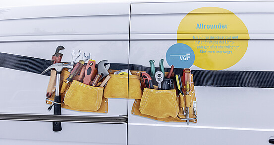 Für die Kontrolle von Baumaßnahmen an Straßenbahn und Bushaltestellen ist das Fahrzeug im Einsatz. Geladen hat der Prüfmeister Kleinmaterial und Werkzeug und so können auch vor Ort kleinere Arbeiten direkt erledigt werden.