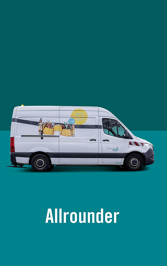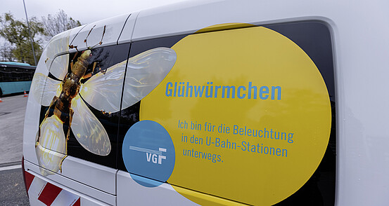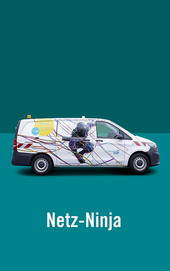 Das Fahrzeug ist für Reparaturen der Beleuchtungsanlagen in den oberirdischen sowie in den unterirdischen U-Bahn-Stationen im Stadtgebiet unterwegs. Alle gängigen Leuchtmittel, die in den Leuchten verbaut sind, hat der Netzninja immer dabei.