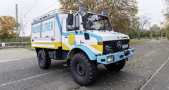Bei einer Fahrstromstörung geht es um jede Sekunde, denn bis man vor Ort ist, ist nicht bekannt in welchen Zustand die Fahrleitungsanlage gerade hat. Damit also keine Gefahren entstehen, sind diese Fahrzeuge an 365 Tage im Jahr 24 Stunden besetzt. Mit ihrer Blaulichtanlage sorgen sie dann dafür, dass zügig die Gefahr abgewehrt ist und die Bahnen schnell wieder fahren können.